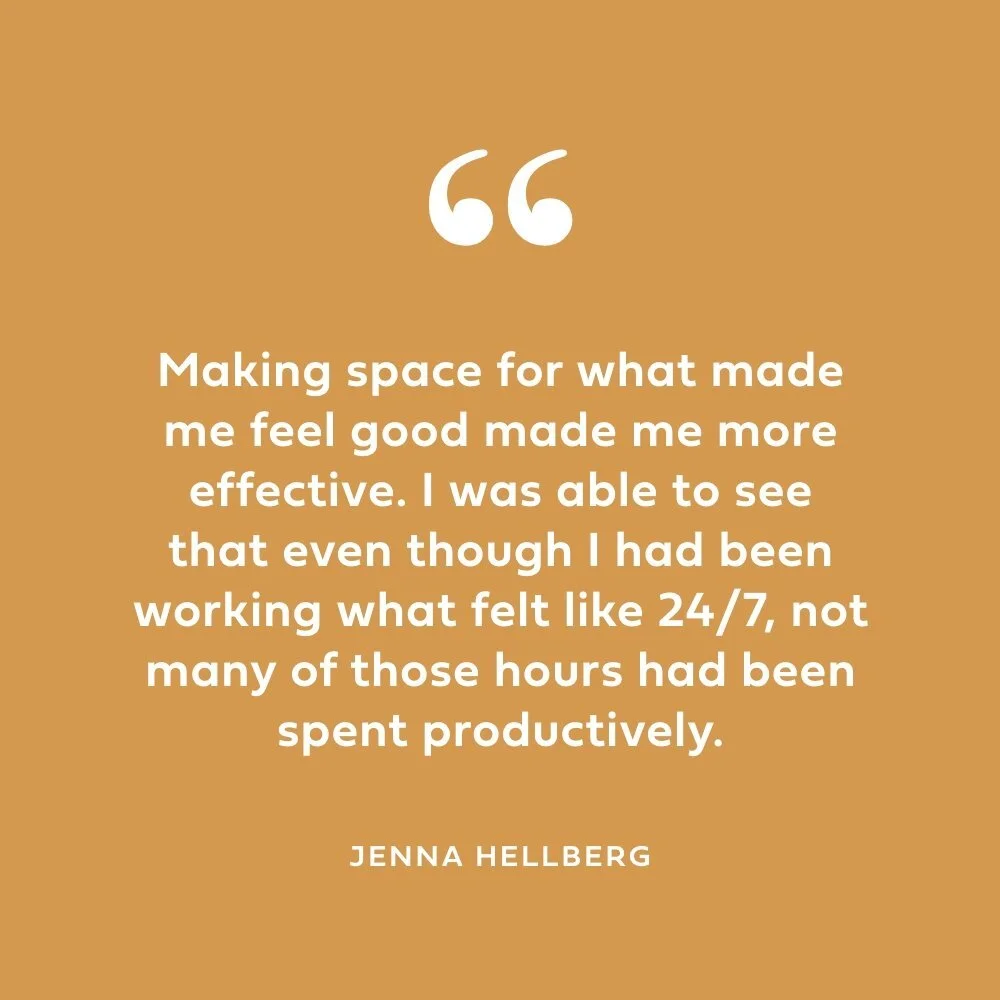 >> Making space for what made me feel good made me more effective. It made me much more MOTIVATED and energized to be productive again. I was able to see that even though I had been working what felt like 24/7, not many of those hours had been spent productively. There’s a limit to how many creative thinking, problem solving hours we have as humans.